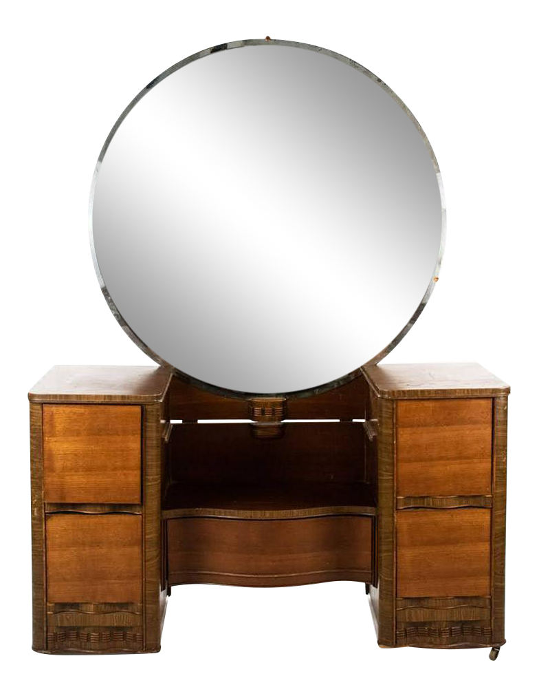 Vintage Art Deco Waterfall Vanity With Round Mirror By F S Harmon Rerunroomseattle